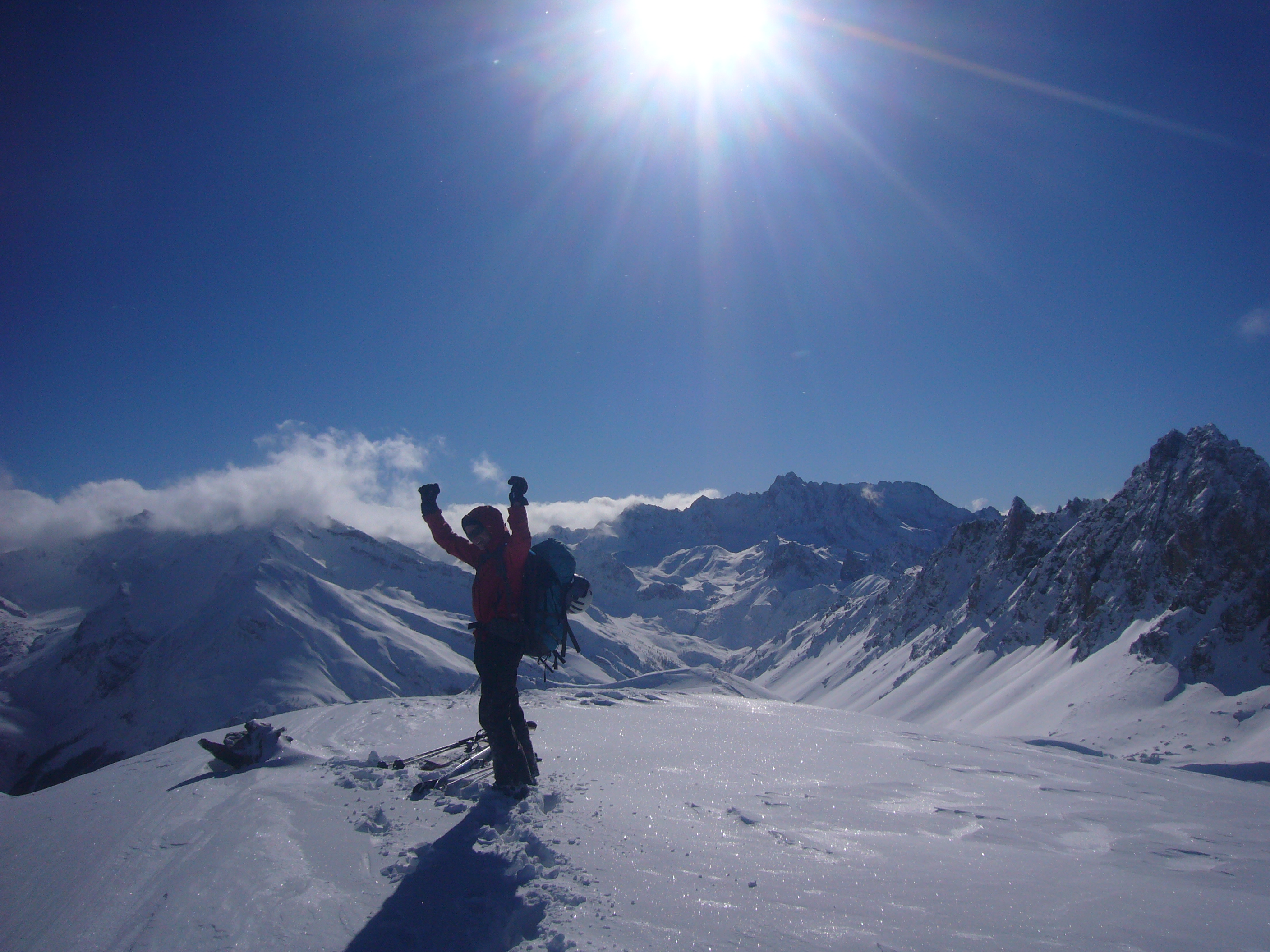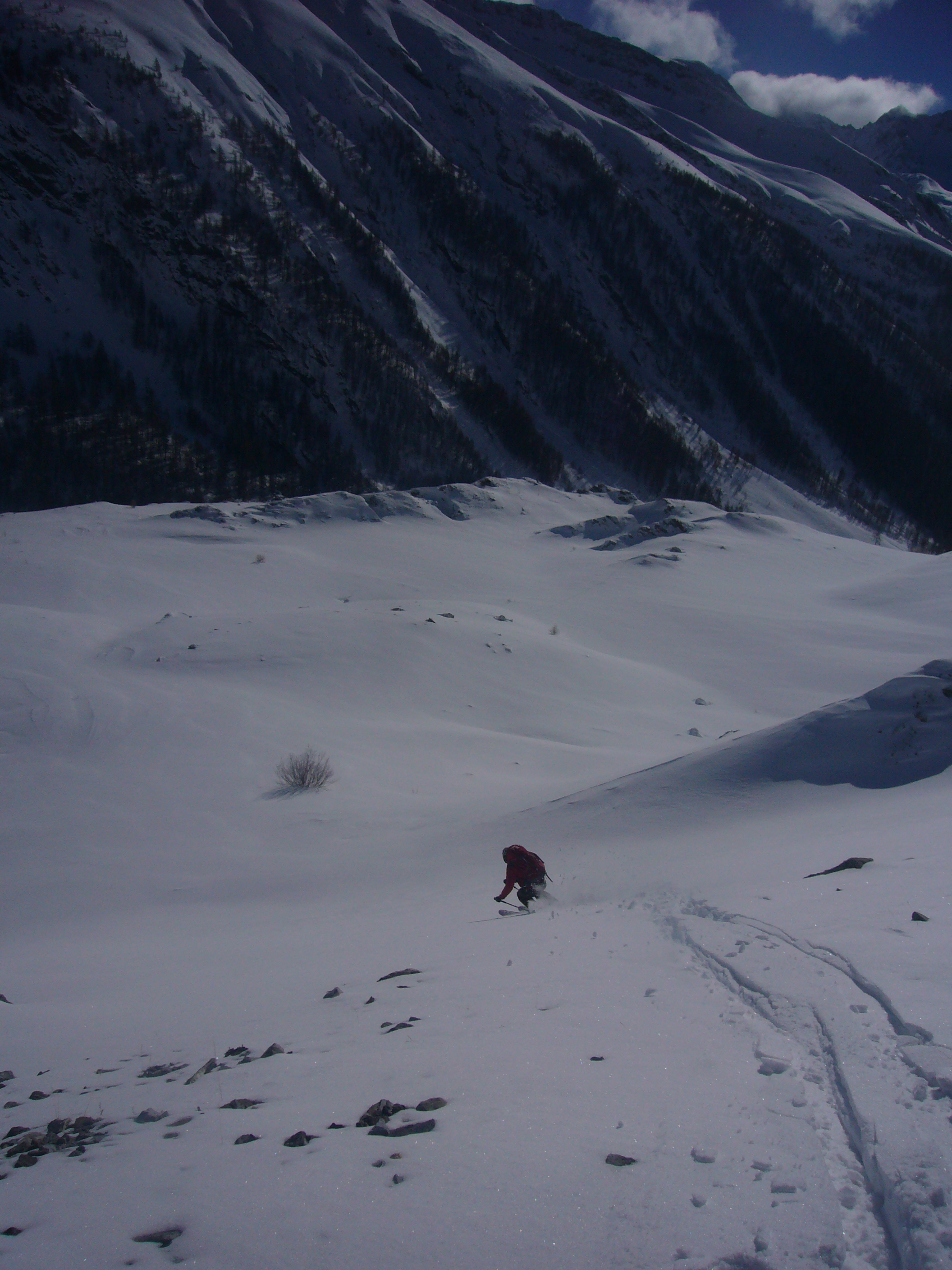 Vendredi, faux départ. Mon Arva ne marche pas (attention aux Arva Evo 3). Après quelques manip’ il fonctionne de nouveau, ouf ! Trois cols au choix pour rejoindre Maljasset. Pour des raisons nivo, on opte pour le col Albert que l’on rejoint par le col Allongé via une arrête jusqu’au sommet de la tête du Rissace. Le ciel est bleu et la neige plutôt excellente jusqu’à Maljasset malgré quelques pièges sous la jolie poudreuse. Encore une fois c’est seuls que nous avons vécu cette dernière étape dans l’Ubaye…magique ! Arrivée à la voiture en début d’après-midi, il nous reste tout le temps de savourer une bière à Barcelonnette, sous le soleil, en observant les habitants du village jouer aux boules.