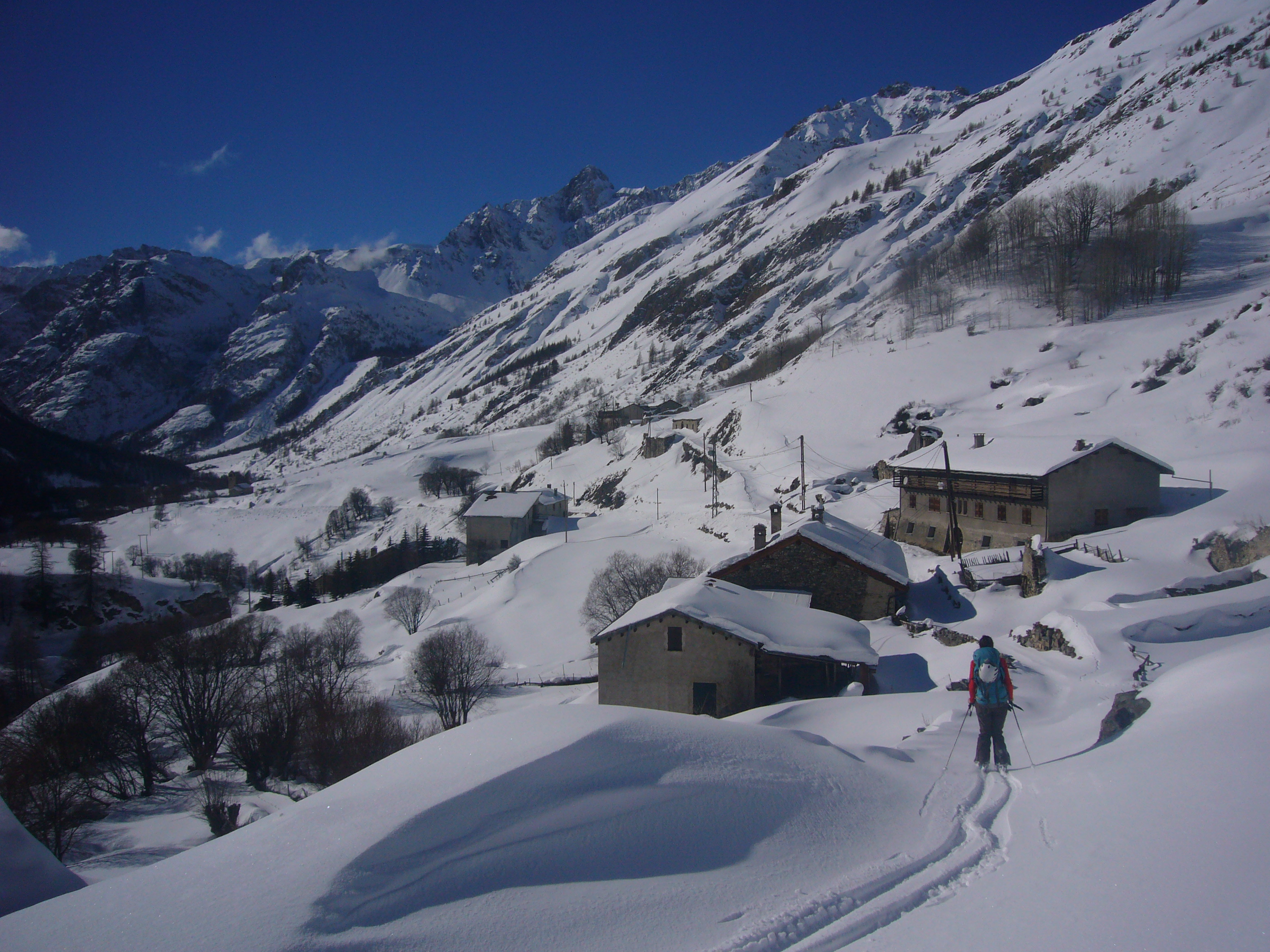 Jeudi, pas d’amélioration de la météo, on oublie le col des Estronques et nous décidons de rejoindre Ceillac en stop. On commence par une descente par la piste de ski de fond jusqu’à Saint-Véran, puis 1 navette et 3 voitures plus tard (le stop avec les skis ça marche bien dans les Hautes Alpes) nous arrivons à Ceillac pour le repas de midi. On trouve un gîte dans la station, faute de place au refuge de la Cime du Mélézet. Un créneau météo pour le lendemain : idéal pour boucler la boucle et rejoindre Maljasset.