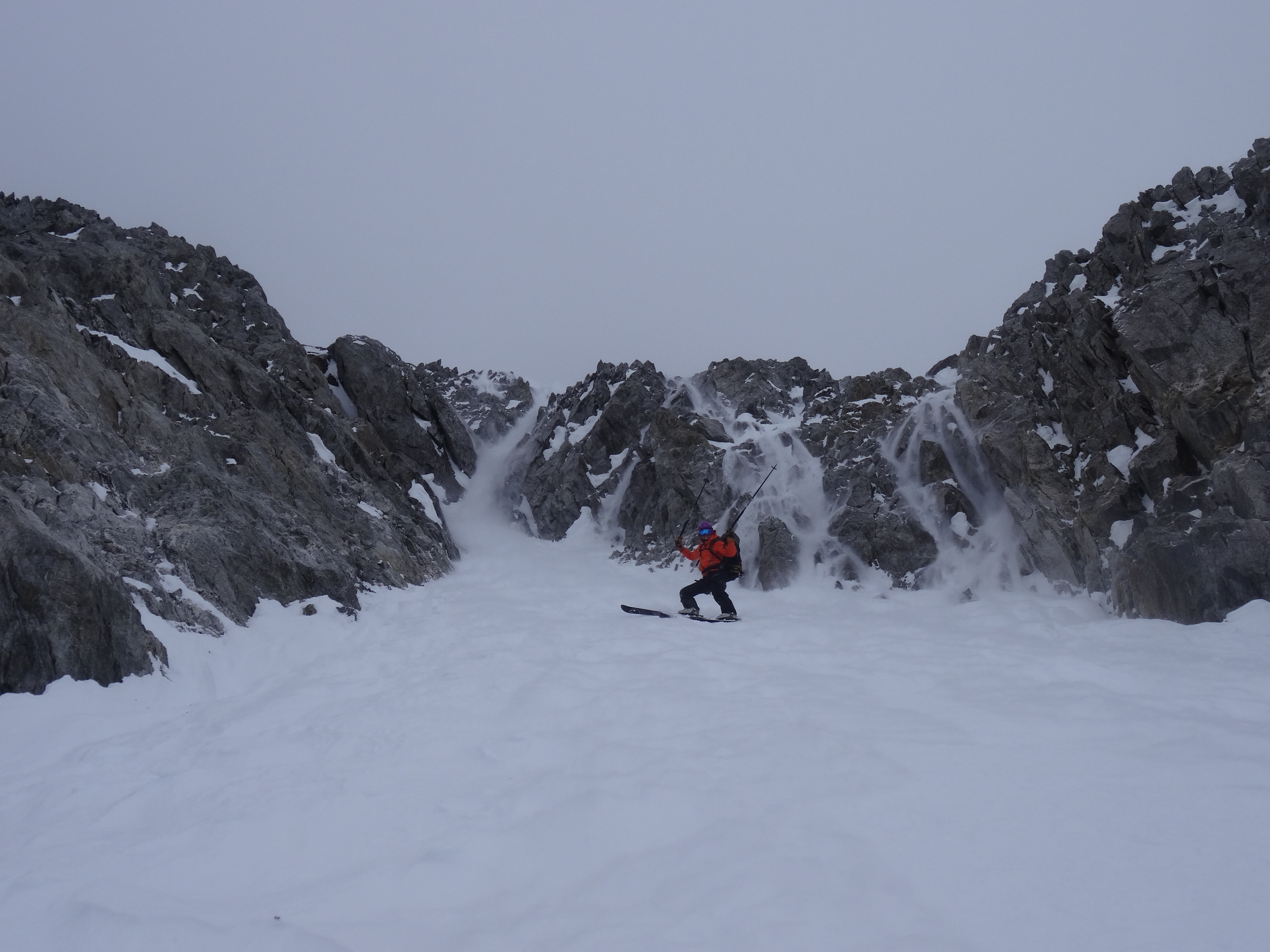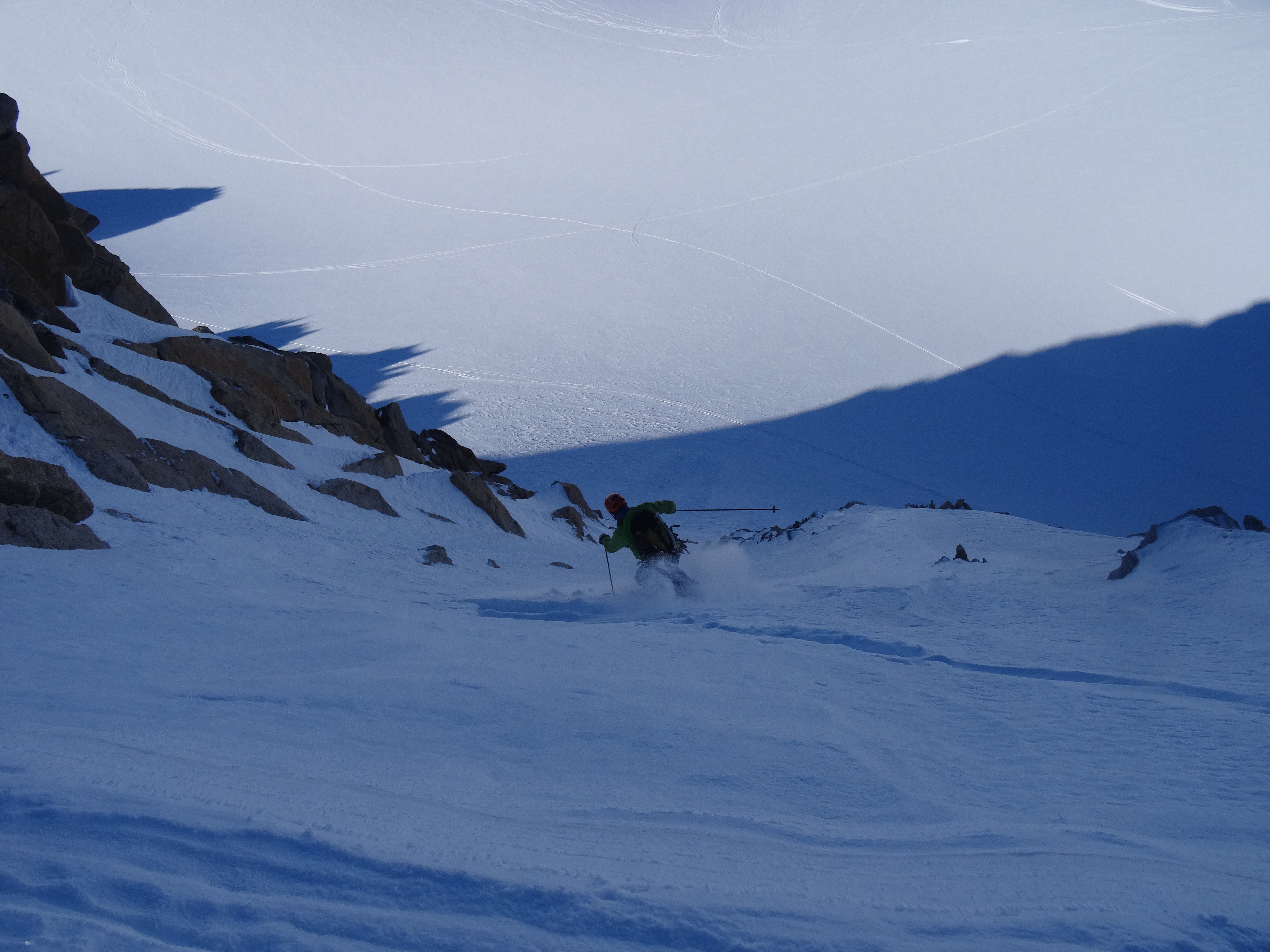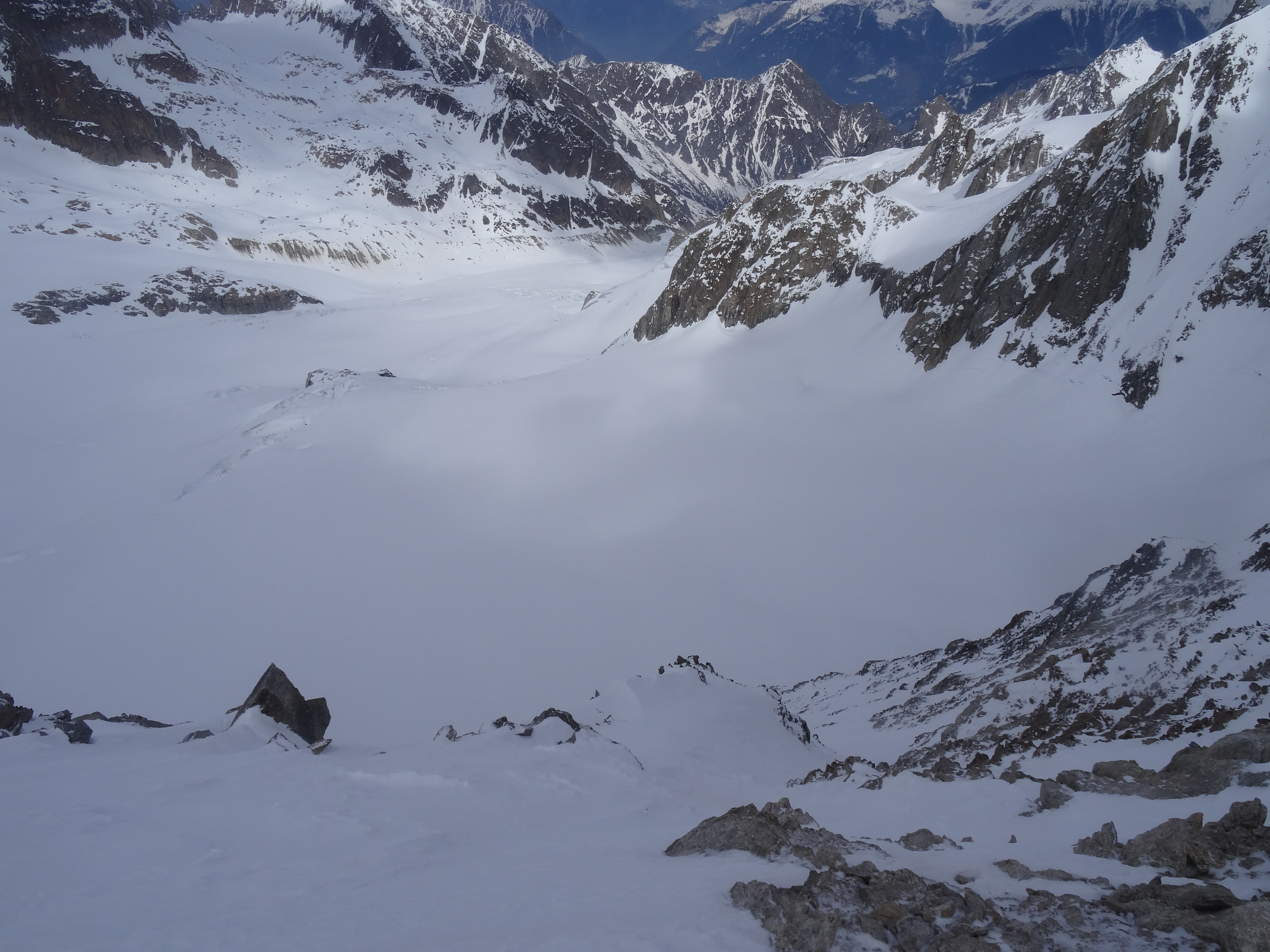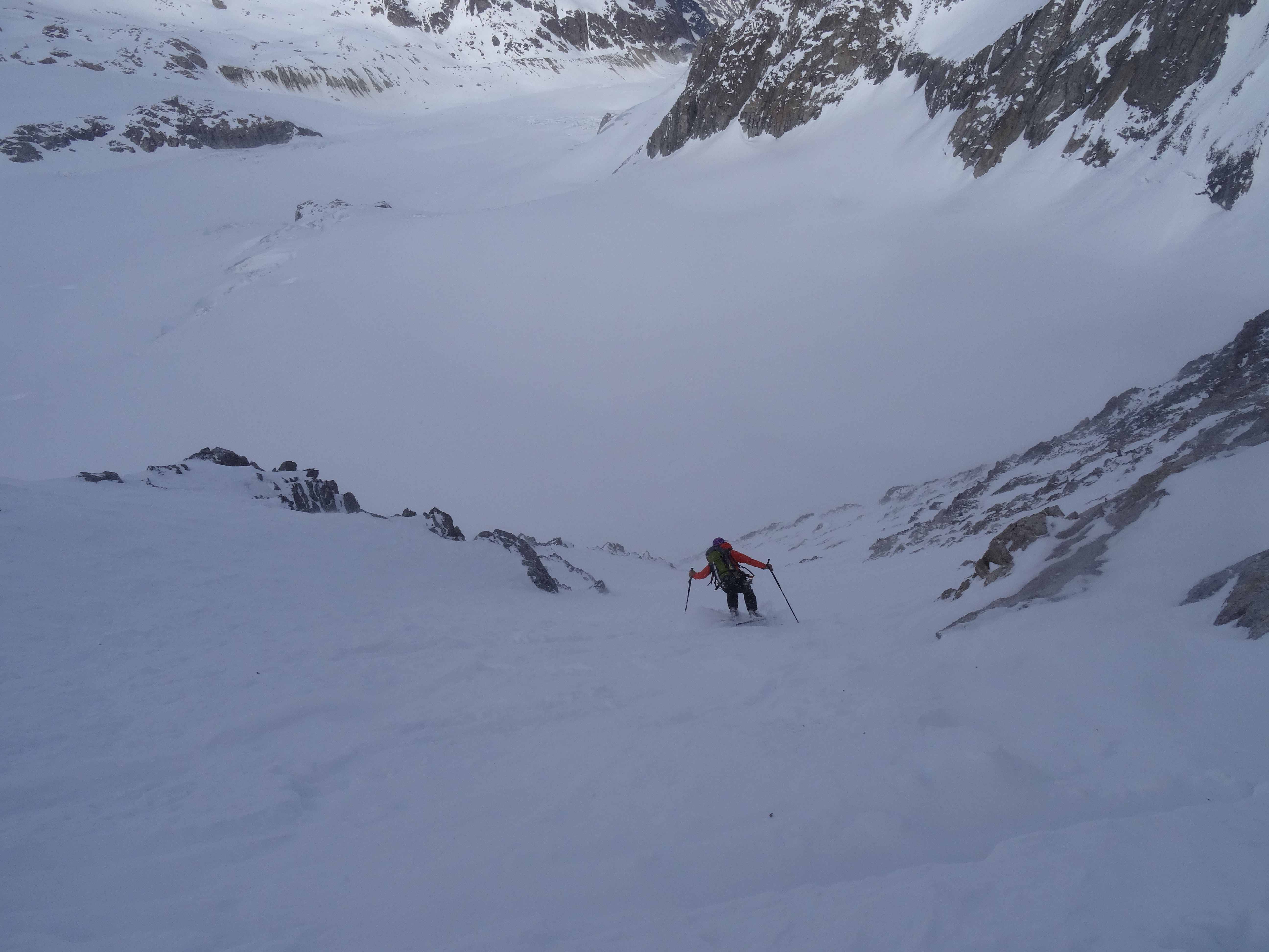 Donc en route pour le couloir Finn-Biselx. Magnifique, belle ambiance, mais neige béton et vraiment pas facile à skier. On profite de la moquette sur la fin.