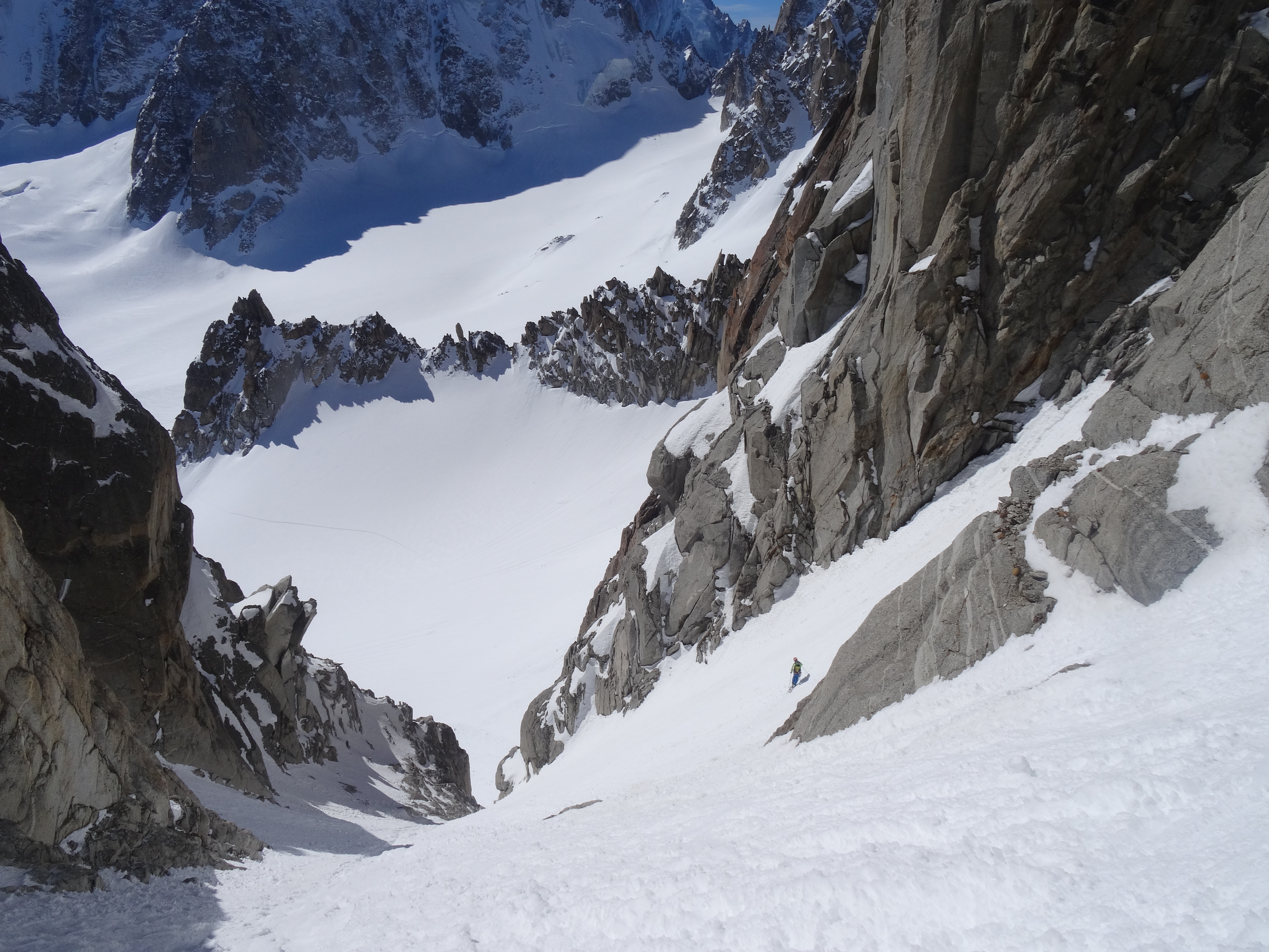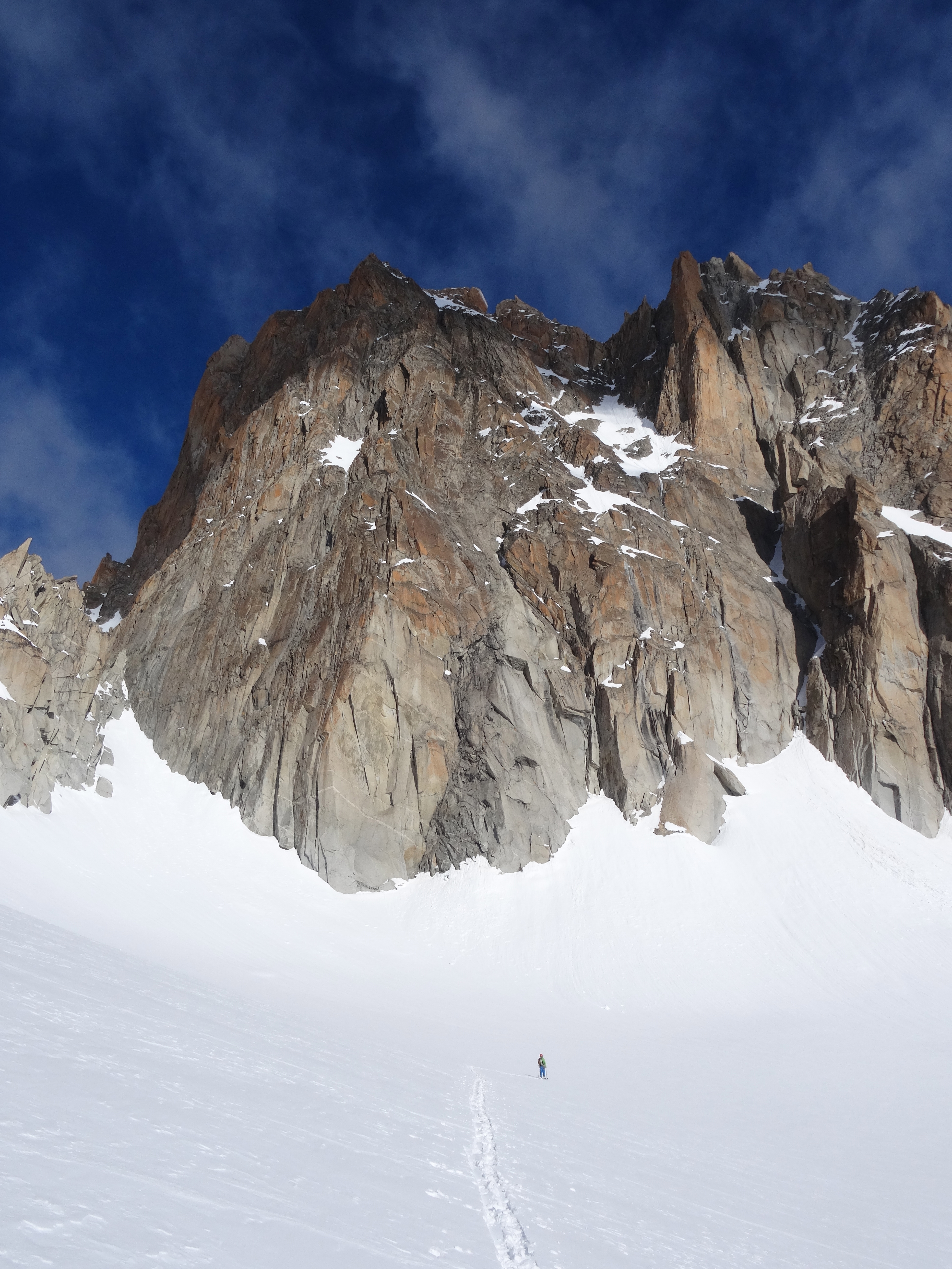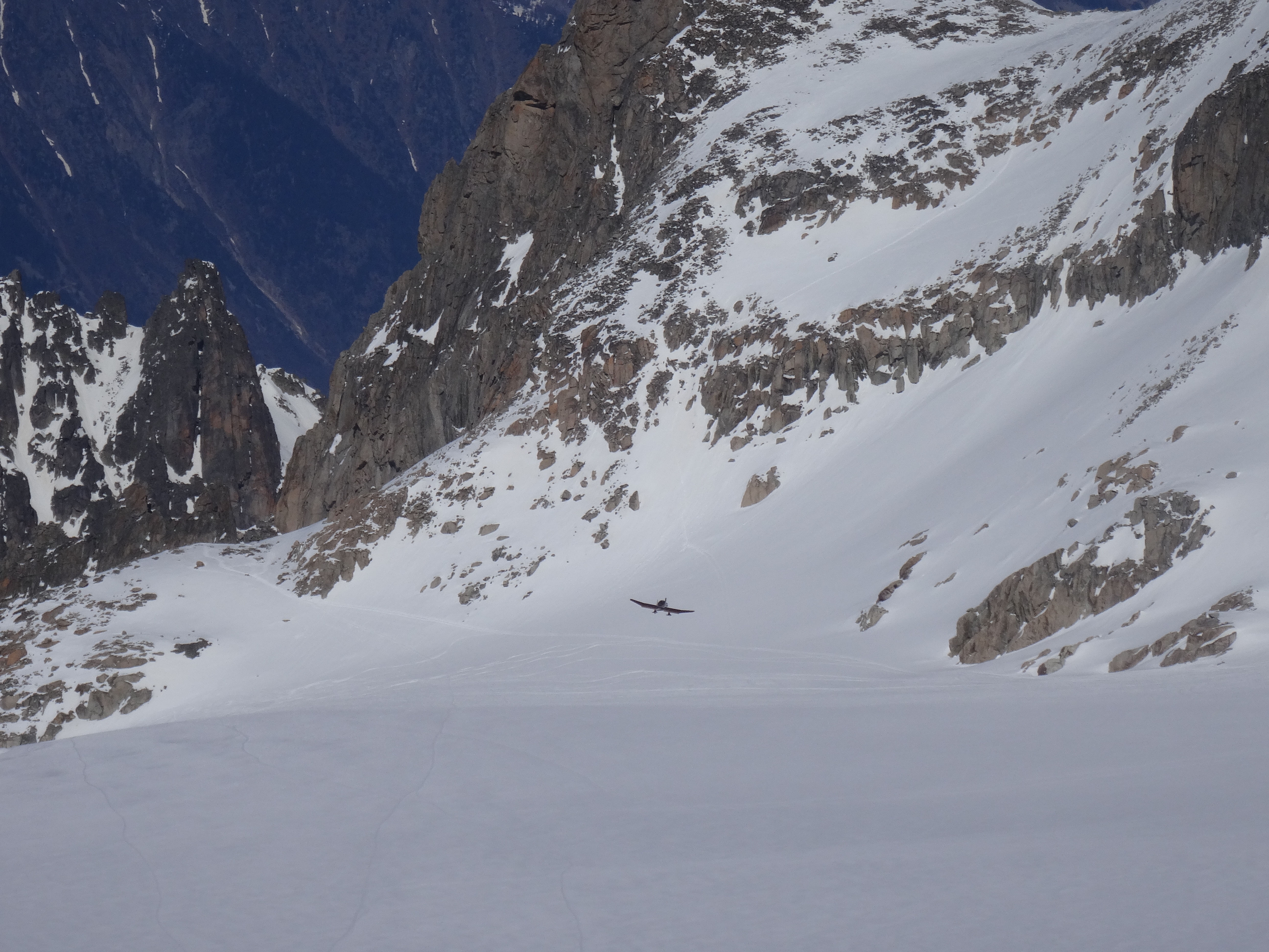 Un coup de benne des Grands Montets et nous voilà au pays des glaciers (seulement 1h30 de queue cumulée, une affaire !). On traverse le glacier d’Argentière puis montée au Col du Tour Noir. Mais en fait c’est long et plat cette affaire ! Par contre, en terme de paysage, difficile de se plaindre 🙂 Pour tous les amateurs de pente très raides/manieurs de piolets, les faces N du bassin ressemblent à Greg la nuit du refuge du Chardonnet, à savoir « sec ».
