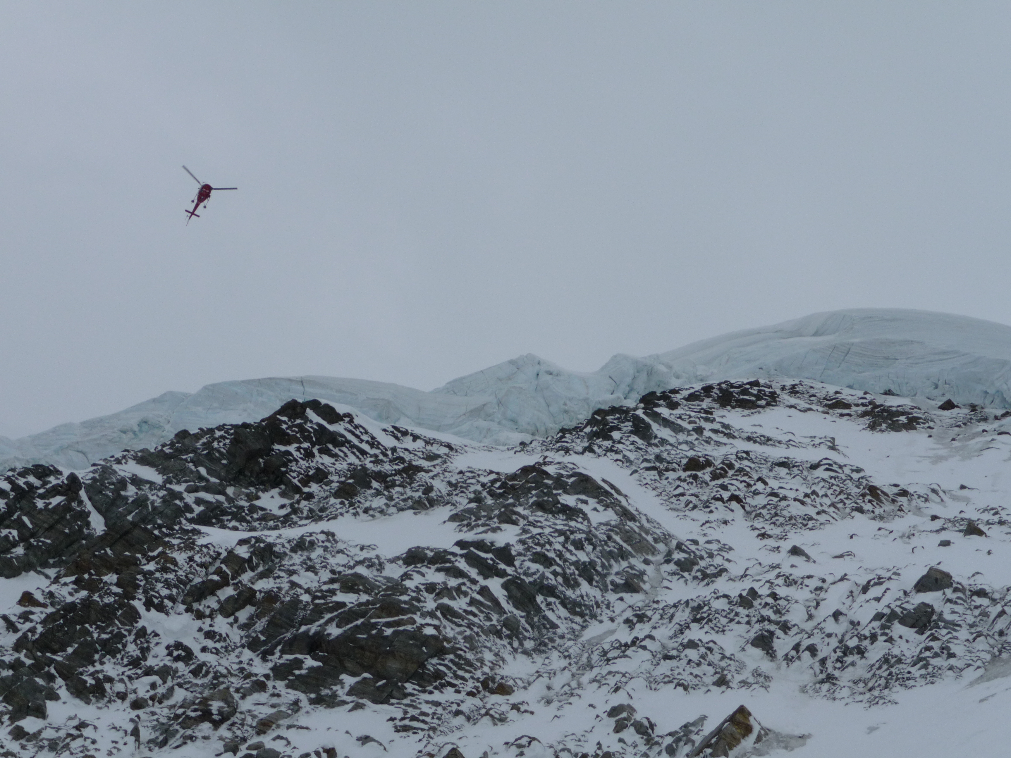 Je décide de descendre la face, je ne suis pas tout seul, l’hélicoptère qui filme la Freerideuse en train de monter est là pour me surveiller.